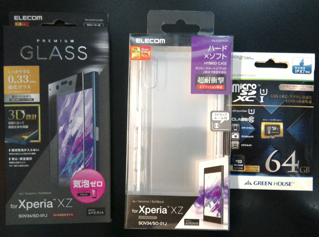 スマホケース、保護シート、microSDカード64GBを購入しました。