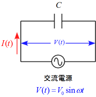 交流回路のコンデンサーにおいて電流の位相と電圧の位相が$\frac{\pi}{2} \mbox{[rad]}$ずれる理由