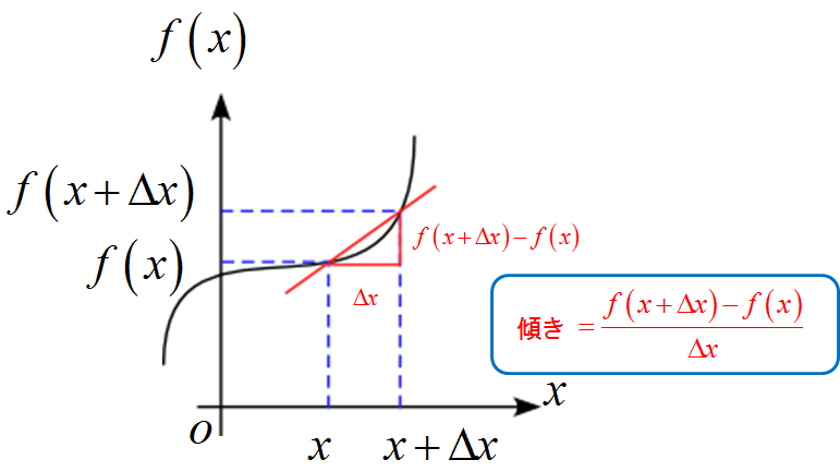 f'(x)=\lim_{\Delta x \to 0} \frac{f(x+\Delta x)-f(x)}{\Delta x}
