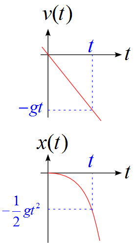 x(t) &=& -\frac{1}{2} gt^2 \\