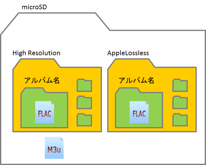 microSDカード内に「High Resolution」と「AppleLossless」のフォルダがあり、