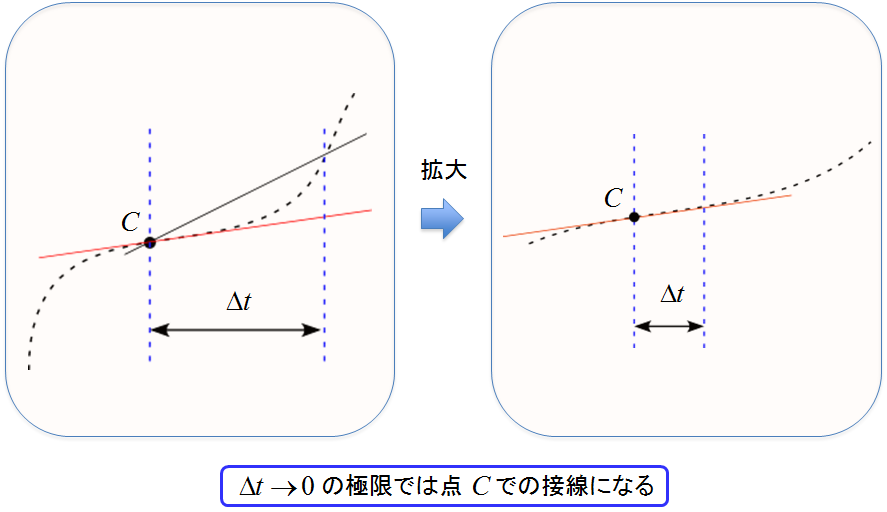即ち$\Delta t \to 0$の極限を考えます。