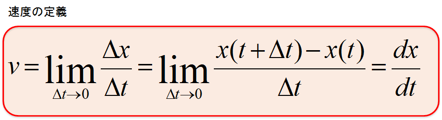 「速度の定義式を書け」と言われたら「$v=\frac{dx}{dt}$」と答えるのが正解です。(1次元の場合)