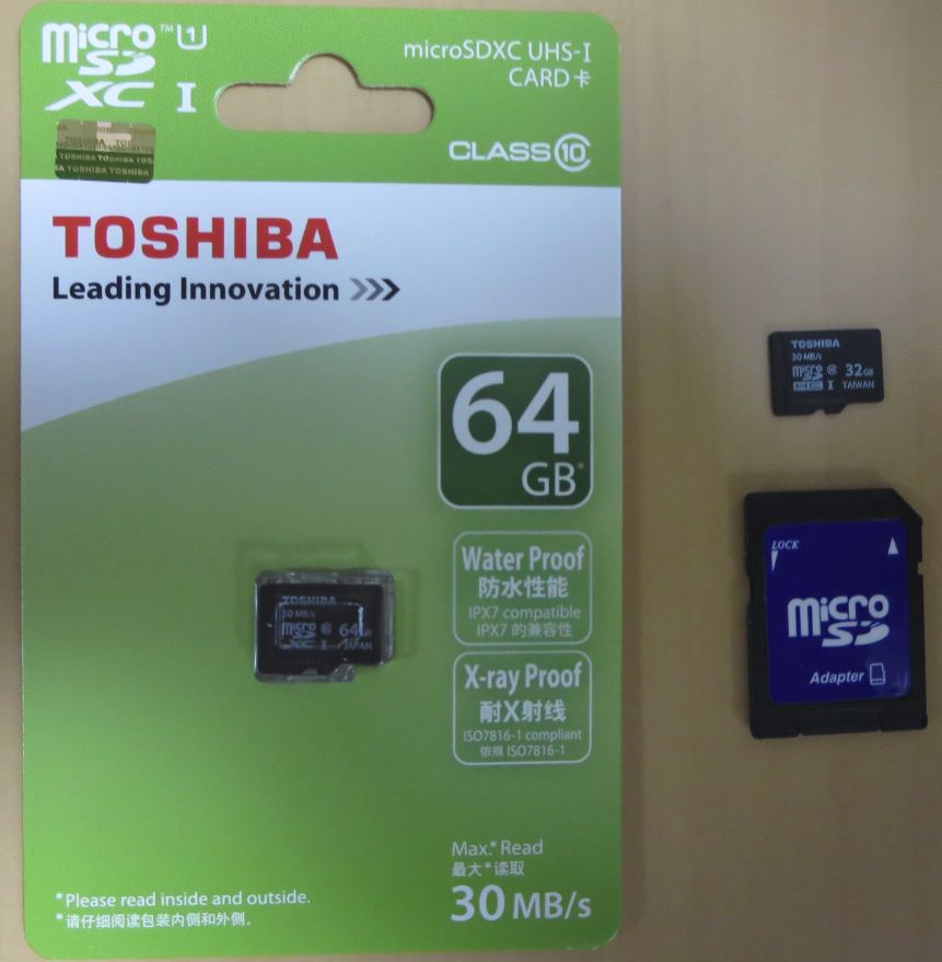 公式に対応しているのは32GBまでですが、使えたらラッキー程度の感覚で64GBも用意しました。