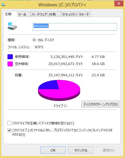 まず、起動直後のストレージの容量の状態です。